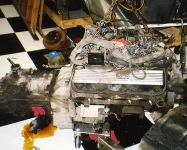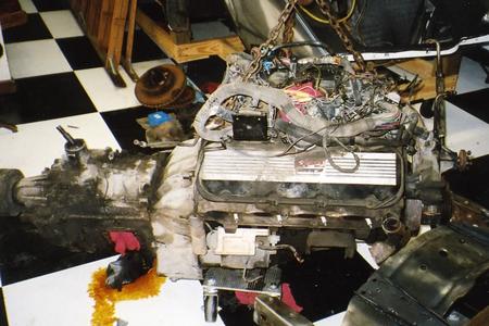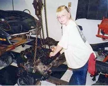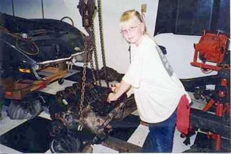 My daughter helps tear down the engine. She claims the Vette is hers