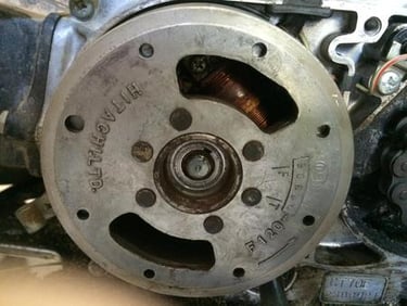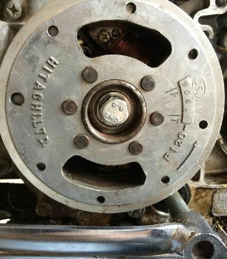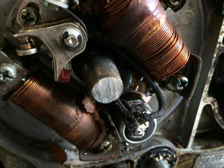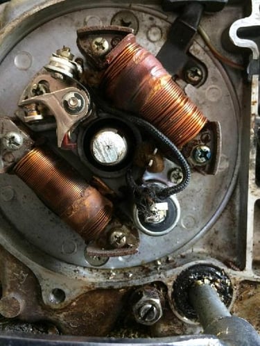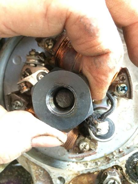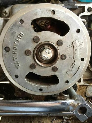 I replaced the points and condenser which is located behind the flywheel. Removing the old points/condenser and installing the new ones was no problem. You have to solder three wires to the condenser, but that is not difficult, but the location makes it a little challenging. I re-installed the flywheel, and not thinking, I used the impact wrench to install the flywheel nut. That promptly broke off the threads on the crankshaft where the nut goes. I could not believe I made such a mistake, but with mistakes, there is something new to learn. I started searching for a used crankshaft since there are no crankshafts produced for these old K3 CT70 motors. In my search, I found that there is actually a fix for this problem, apparently, this has been a common issue in the past of breaking off the threads.