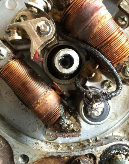 You can see that the shaft in the middle of the flywheel is broken off.