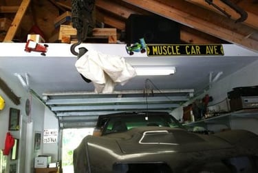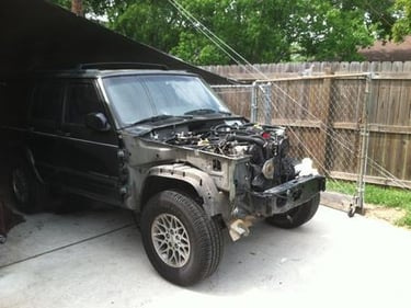 This is the drivers side airbag. I hung it on the engine lift hook when I first started working on Kermit to show what helped keep Allison from getting hurt. I may keep it up there for a while.