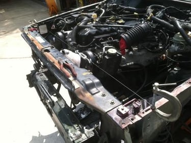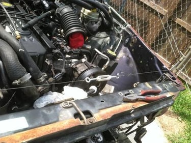 I went to Pick-A-Part to get a set of hood hinges and a fan shroud. I had 2 sets of hinges, but both sets, the driver's side were bent. They did not look like it until I installed them. This afternoon, Allison is going to help me install the hood. Once that is done, there are just a few details to take care of and Kermit will be done.