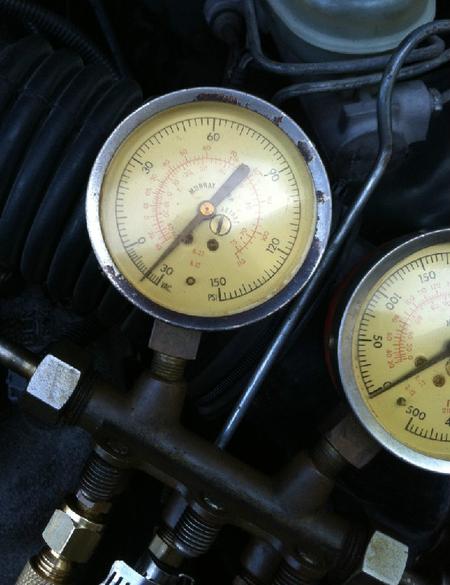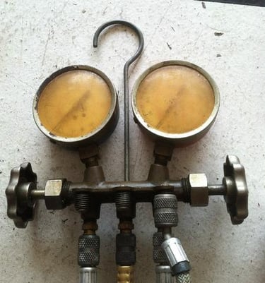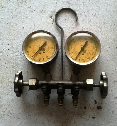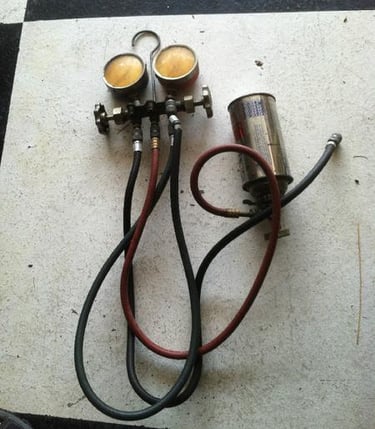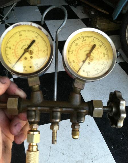 I found my old A/C manifold which is old school R-12. I cleaned it up and converted it to R-134 with new hoses and adapters.