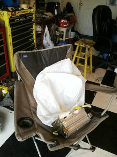If you ever wonder how big airbags are once deployed, here are what Kermit's looks like. This one is the passenger side. I put it in this chair to give a size comparison.
