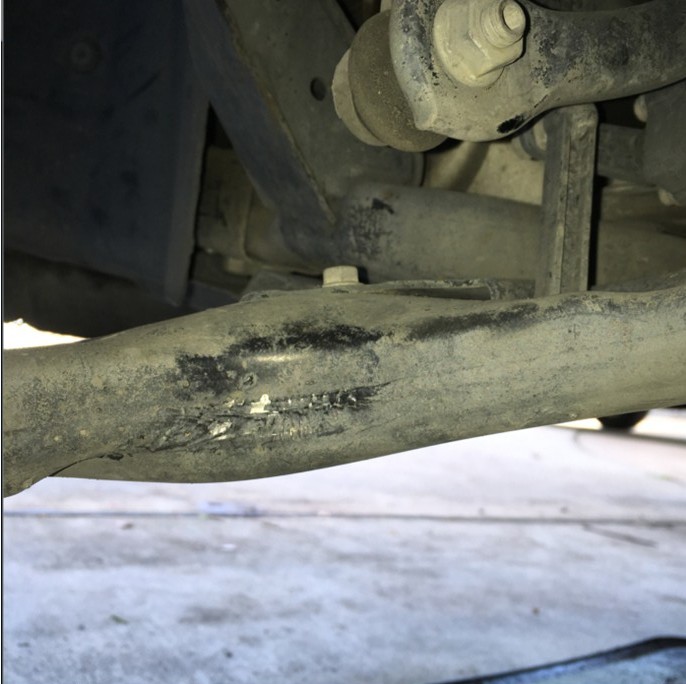 In order for the drive shaft and sway bar link to rub against each other like this, the control arm must have been bent back about 1.5 inches. I posted what I knew and the pictures I took on Motoring Alliance, A Mini Cooper Forum.