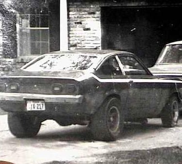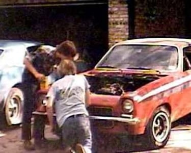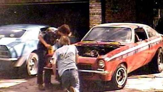My other brother, Donny (standing) dropped a 350 small block in this '73 Vega.