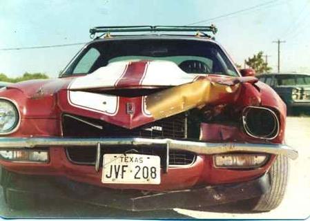 Johnny had a really cool '71 Z/28 on which he molded an L-88 hood scoop. This was the first time I had ever seen an L-88 scoop and have loved them ever since. Anyway one time Johnny was in Galveston heading to the beach when someone pulled out in front of him and this was the result.