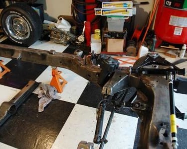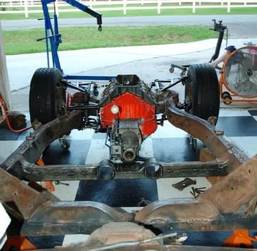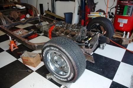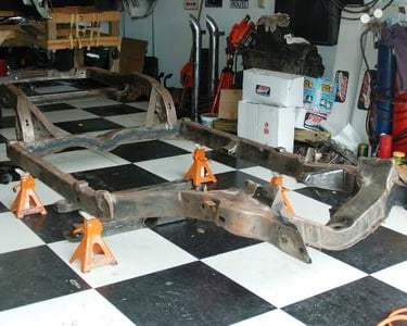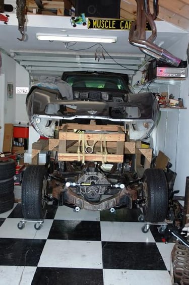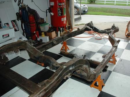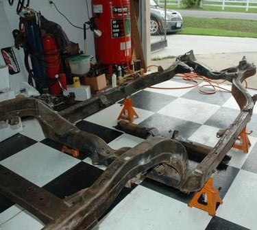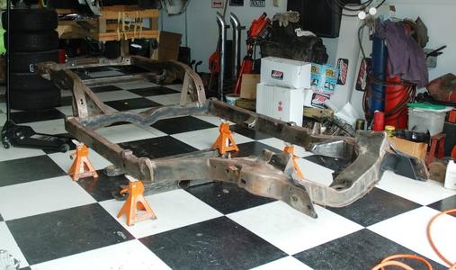 The frame back under the body. Can't wait until the body is back on the frame!!