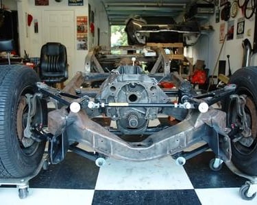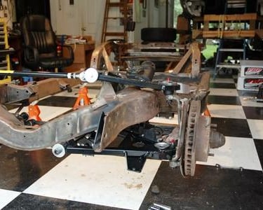 Both sets of A-Arms, Spindles, Spreader Bar and Discs in place.