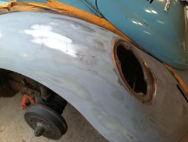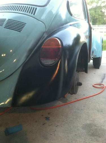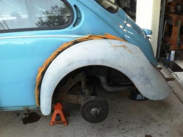 The passenger side quarter panel is next on my list to replace. I have a full quarter panel from a 1970 Beetle. I plan to weld it into place then body work it before I paint it to match the fenders.