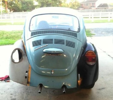 The first modification I did in reviving the Bug was to replace/upgrade the rear tail lights. In this picture are the original tail lights affectionately known as "elephants feet" among VW enthusiasts.
