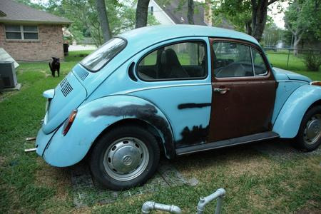 The Bug has sat in our backyard for over a year and needed some work to get it back on the road. Due to the escalating gasoline prices, I am prepping it to become my daily driver. I am keeping my 4 wheel drive Tahoe, but will drive it only when necessary since it only gets about 14 miles per gallon in town. Since by my nature, I can't drive something that is totally stock, the Bug is getting some personal treatment. First thing is completing the bodywork where it was hit in a parking lot. I have replaced the passenger-side door, and will be replacing the quarter panel in the passenger-side. I have a quarter panel ready for it so it will be my next project with the Bug. The long range plan for the Bug is to paint it either Satin Black or Dark Blue. Right now I am leaning to the satin black since that is what I want to paint the Vette. I like the idea of "experimenting" with the black to make sure that is what I want for the Vette. Also, in the plans are to drop the suspension so that the Bug rides lower and handles better. Some minor mods to the engine are also in the plans, but I am not going overboard with that since the whole idea of reviving the Bug is to have an economical car to drive.