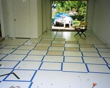 The White squares are now taped off, and the exposed floor is ready to be painted Black.