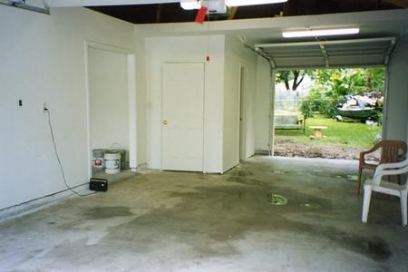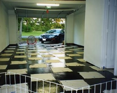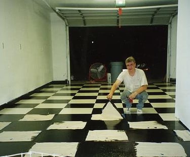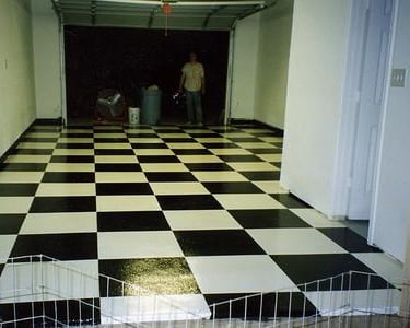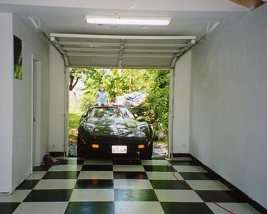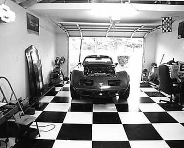 The garage was built during the Summer of 2002. Before I moved the Corvette into it, I painted the floor Epoxy Black & White squares. Here are the steps I took in finishing the floor: