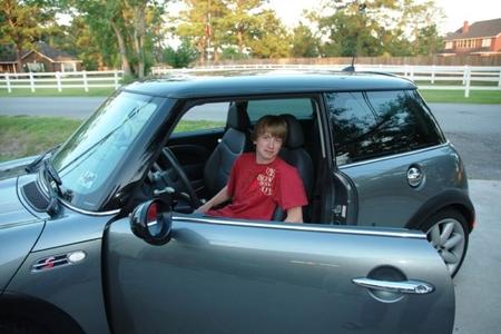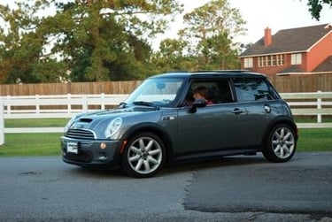 This is my son's car, a 2006 Mini Cooper S. He had always wanted a Mini Cooper S, but when he first learned to drive I got him a VW Super Beetle. When he graduated high school, my wife and I bought him this Mini Cooper S and really surprised him.